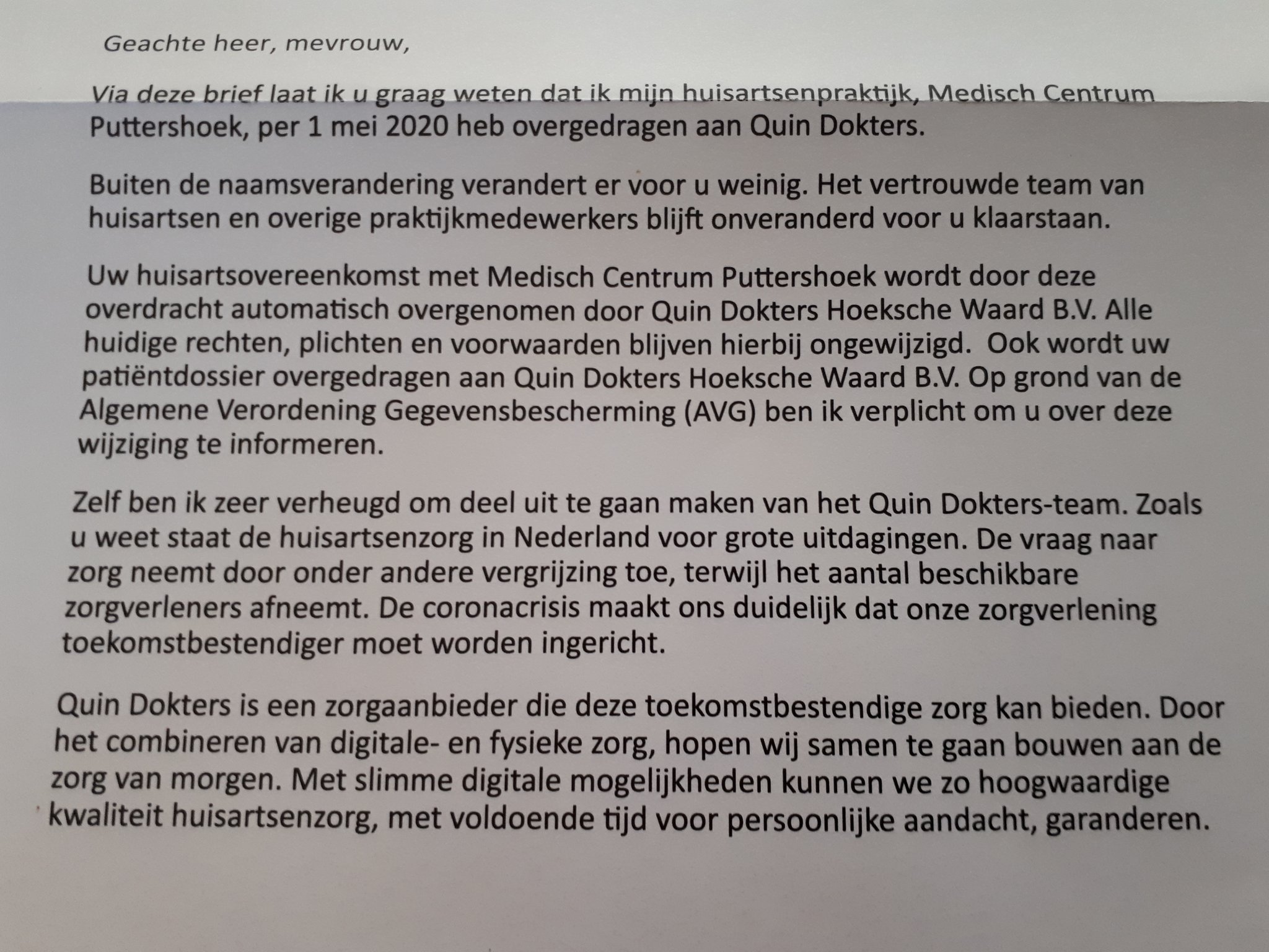 Geen contact voor oude patiënten vanuit medisch centrum puttershoek bij overschakeling naar nieuw . In ons team werken zeven huisartsen, zes assistentes, .